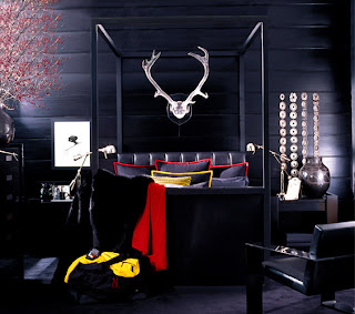 So what does everyone think? Do we stay with the same over sized leather furniture, knotty pine tables and scattered bronzed antelope candle holders as found in the book Mountain Style?